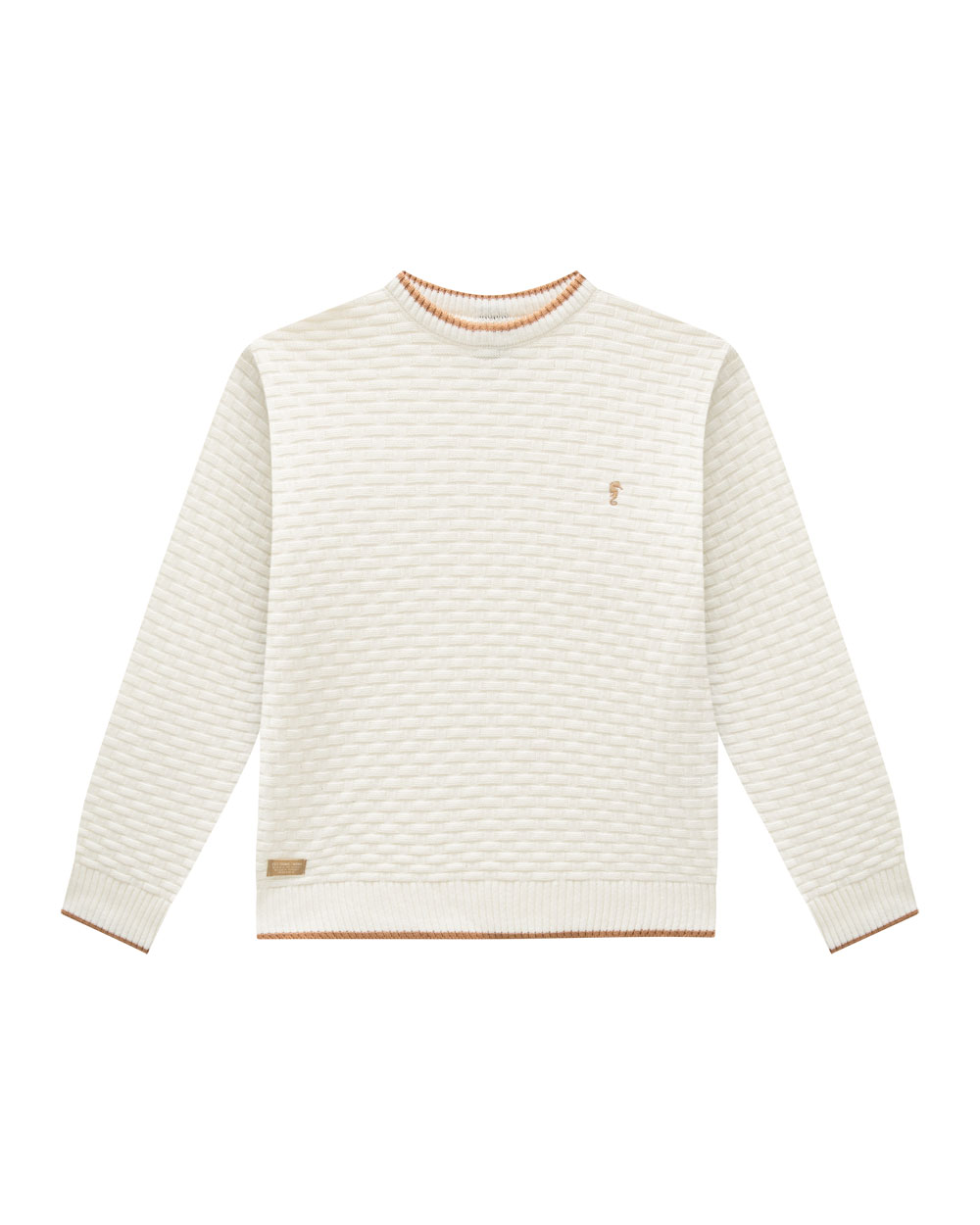 Blusão Onda Marinha para meninos, feito em tricô macio que oferece conforto térmico e ótimo caimento.